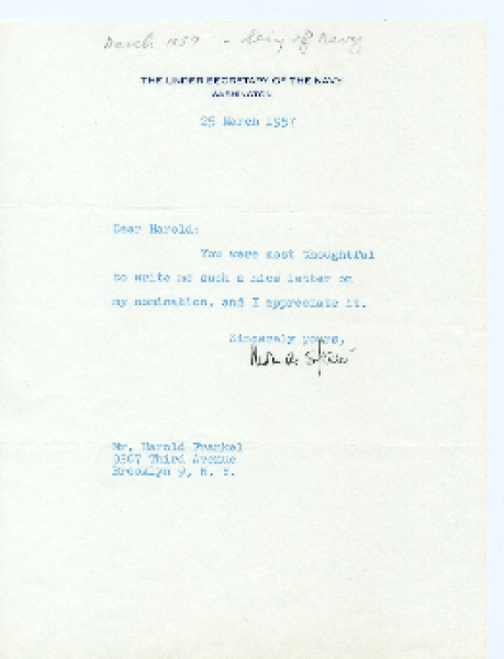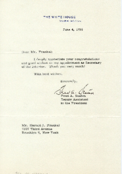nice letter written after leaving office--explains why he could not sign letters while in office; comes with original envelope