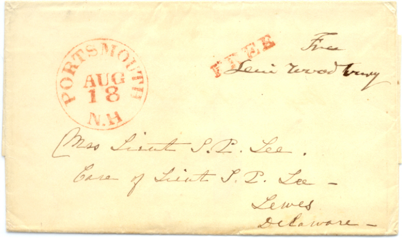 5 X 3 folded letter sheet, postmarked August 18 Portsmouth, NH; Free Frank