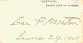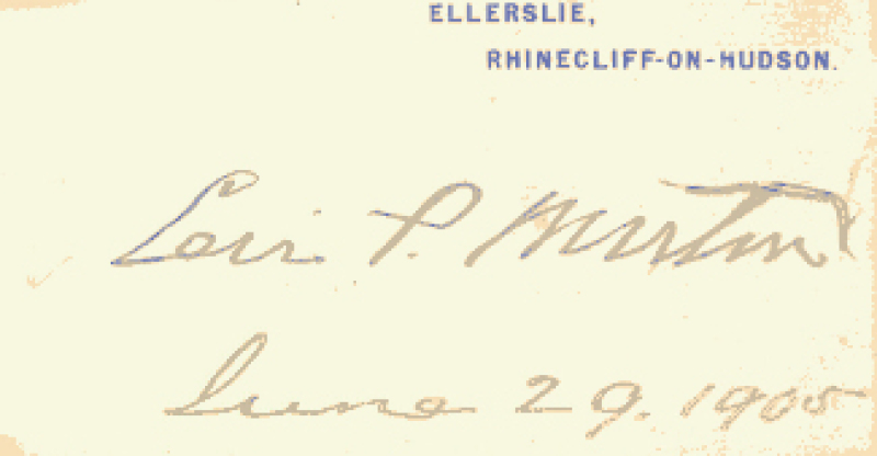 4 1/2 X 2 1/2 calling card (Ellerslie, Rhinecliff on Hudson); dated June 29, 1905