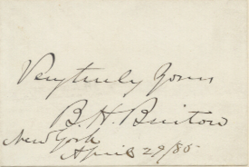 4 1/2 X 3 1/2 heavy calling card, dated April 29, 1880 New York