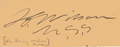 1 X 3 inch cut signature; pasted on 8 x 10 sheet