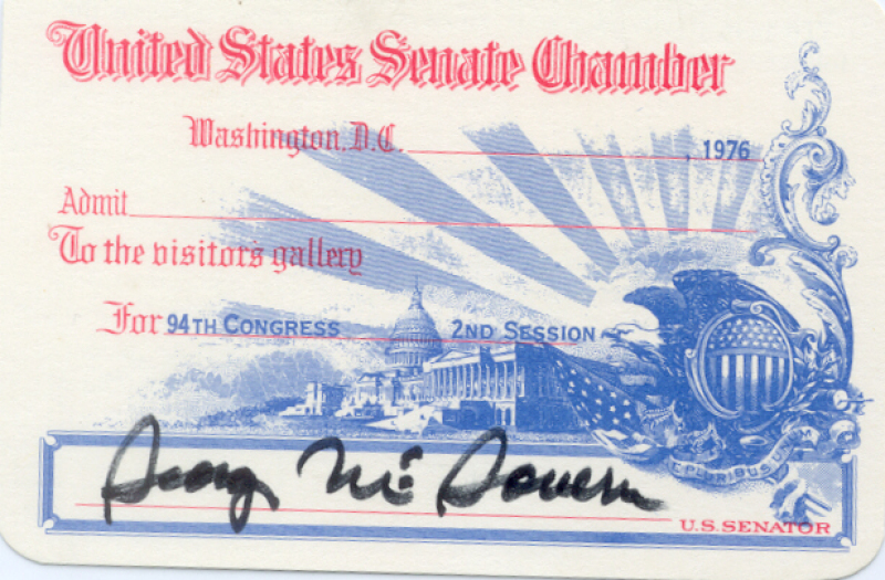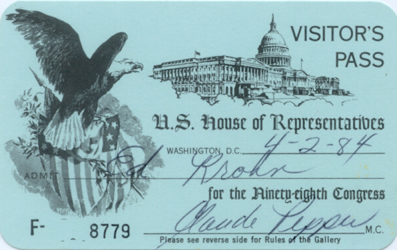 Signed Visitor's Pass to the House of Representatives; authentic signature
