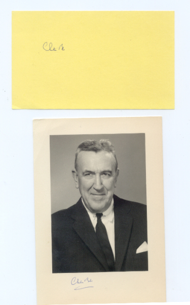 nice small (4 x 6) black and white photo, signed along with a small signed card; excellent condition