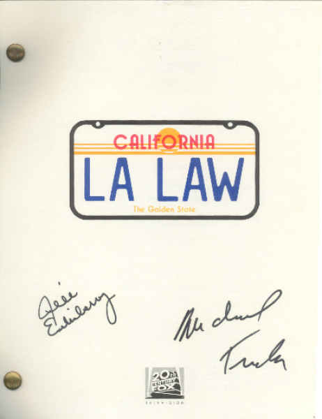 Signed script for the television show LA Law; signed by stars Jill Eikenberry and Michael Tuker; signatures are authentic.