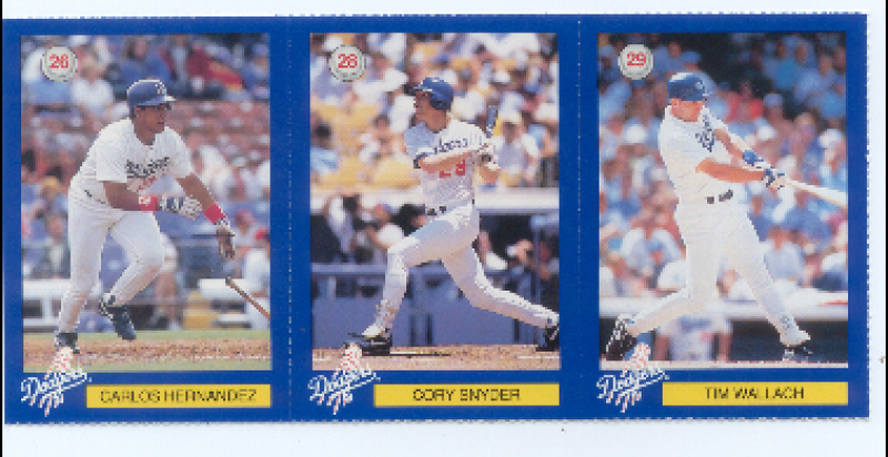 three cards (Carlos Hernandez, Cory Snyder, Tim Wallach) from the Dodgers-LAPD; comes with secretarial transmittal letter