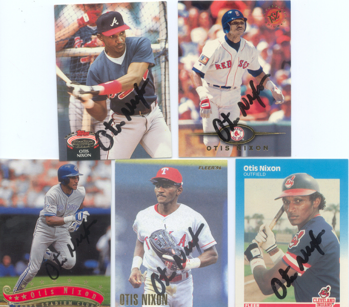five trading cards (Fleer 96;Fleer 86;Topps 95; Topps 92;Topps 97) all signed by Nixon; signatures are authentic