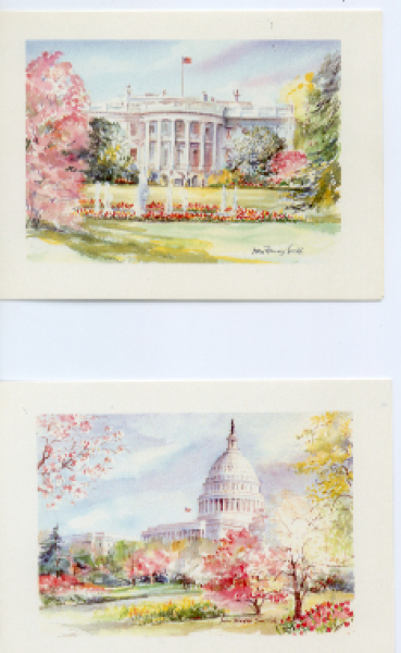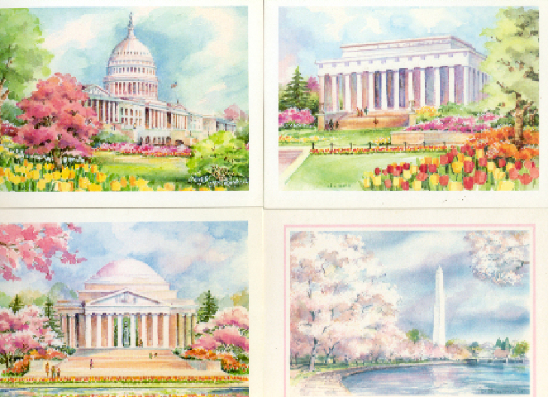 very nice colorful drawings of various pulbic buildings in Washington DC. size is 4 x 6.