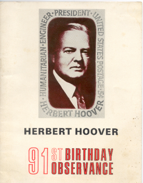 Official Program for the issuance of the commemorative stamp honoring Herbert Hoover; issued in 1965; 24 pages with a First Day Cover included. very good condition