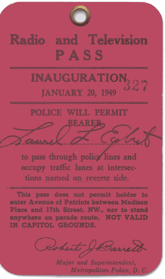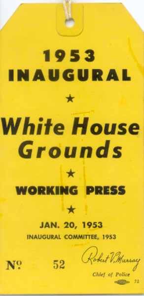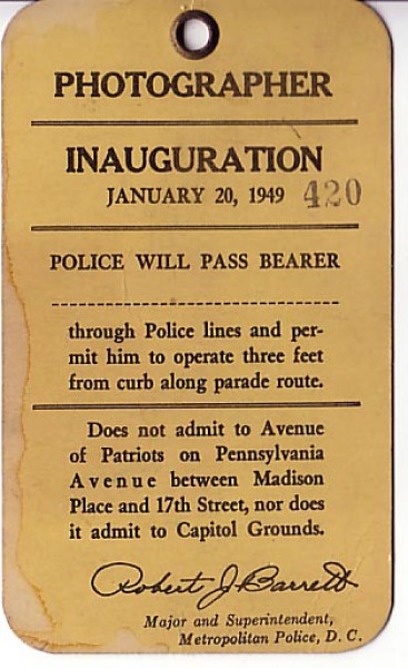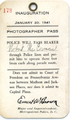 1941 Inaugural Press Pass catalog number PP1941-01 Photographer