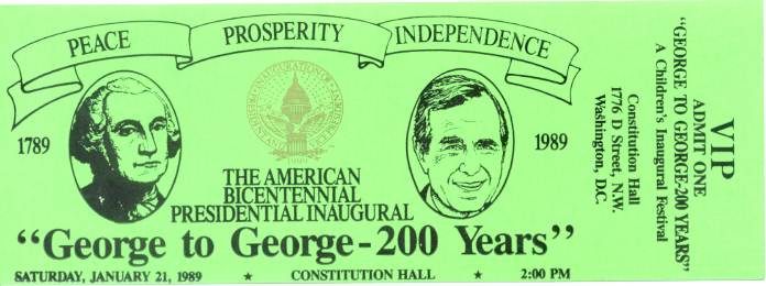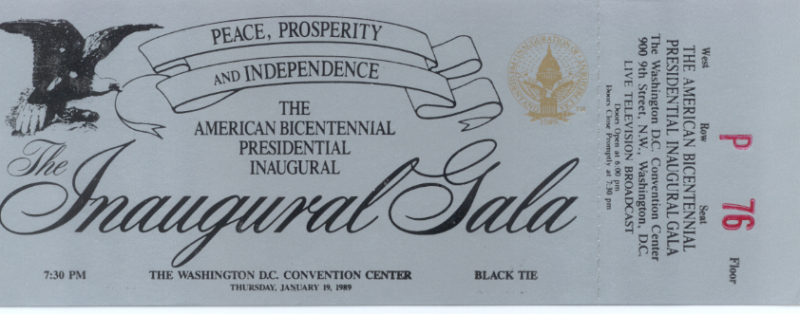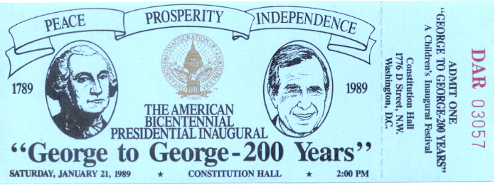 like new condition; impossible to find; these were given to people standing in line at the White House on the morning after the inauguration. This was the first open house at the White House in years. Upon entering the White House, the tickets were torn in half, so very few intact tickets are available. I have another torn in half ticket also. members of the Bush family greeted the guests as they entered. VERY COLD day in Washinton.