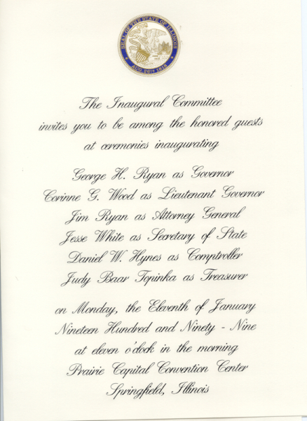 Illinois 1999 George Ryan Inaugural Invitation with original envelope