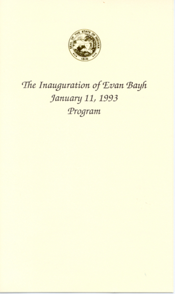 Indiana 1993 Evan Bayh Inaugural Program and Invitation