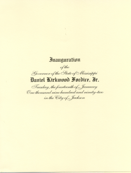 Mississippi 1992 Daniel Fordice Inaugural Program; Invitation; 2 diff Ball Invitations; 7 diff TIckets; Reception Invitation; SIGNED letter