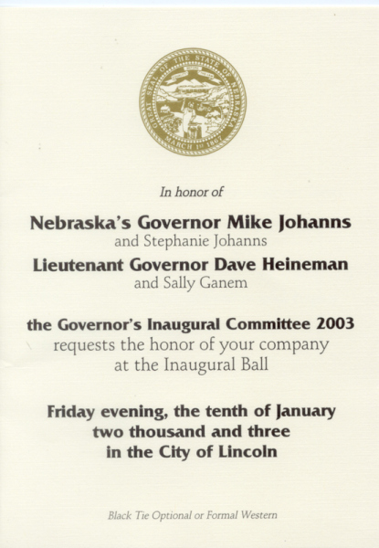 Nebraska 2003 Mike Johanns Inaugural Ball Invitation with original envelope