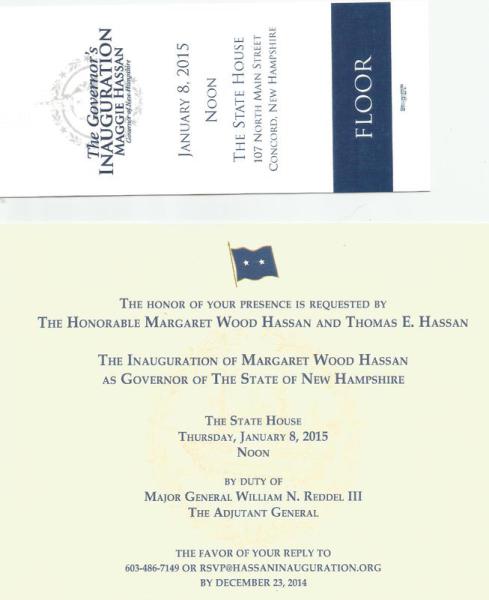 New Hampshire Margaret Hassan Inaugural Program, Invitation and Ticket