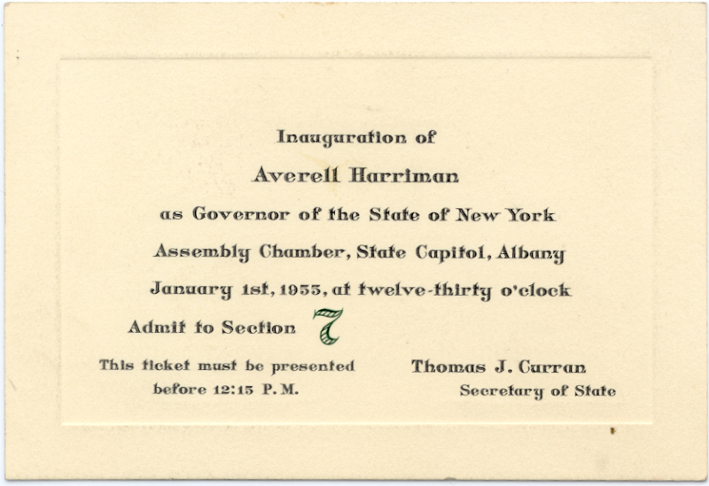 New York 1955 Averell Harriman Inaugural Ceremony Ticket