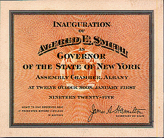New York 1925 Alfred Smith Inaugural Ceremony Ticket