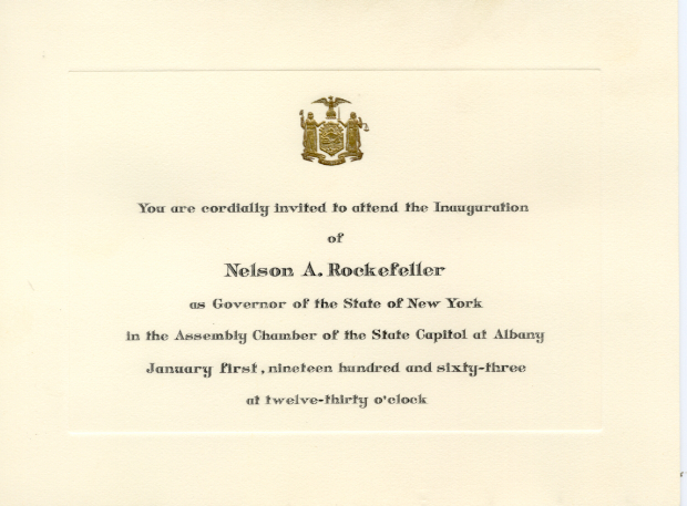 New York 1963 Nelson Rockefeller Inaugural Invitation; Reception tickets (2); Luncheon Invitaiton;
