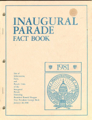 folder with Inuagural Guide; General Orders, Ball Invitation; press releases, telephone numbers, Inauguaral committee contacts; very good condition