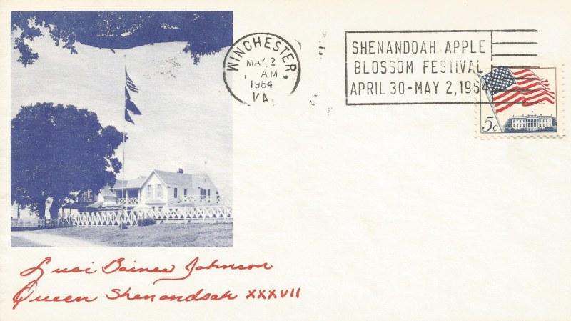 very good event cover for Luci Baines Johnson installed as Shenadoah Apple Festival Queen; unaddressed