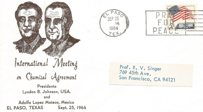 very good event cover for meeting with Mexican President Mateos in El Paso, TX; Addressed