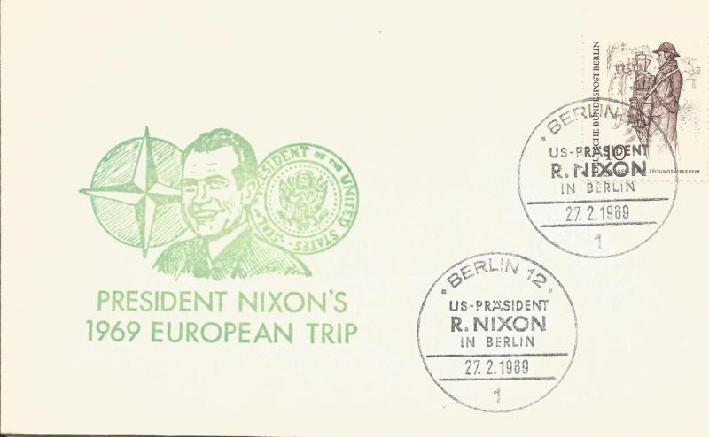 unaddressed event cover honoring Richard Nixon's European trip with Berlin hand cancels